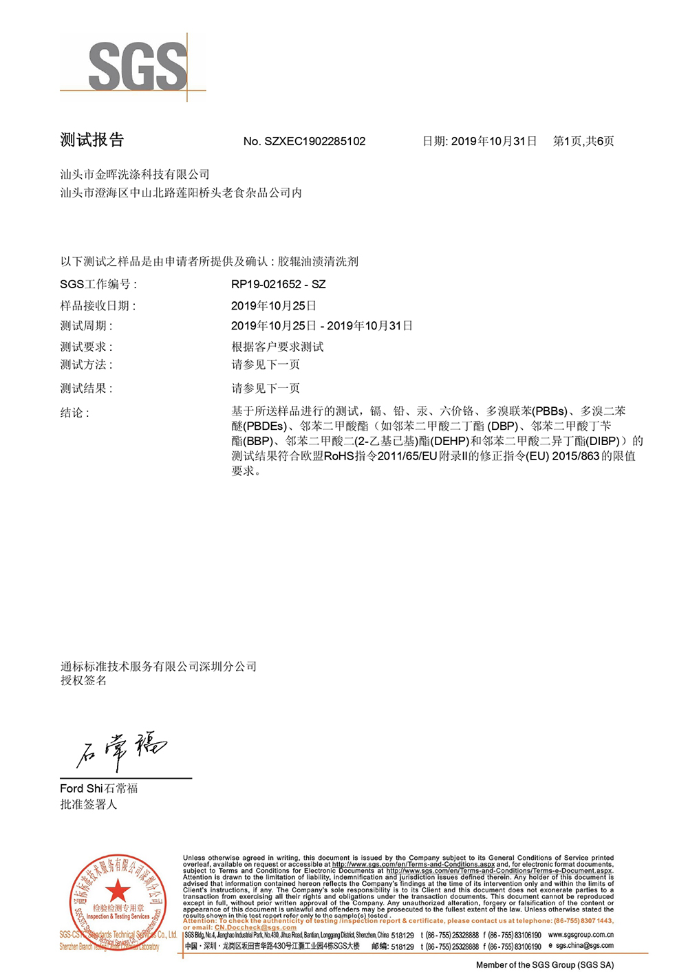 膠輥油漬清洗劑測試報告